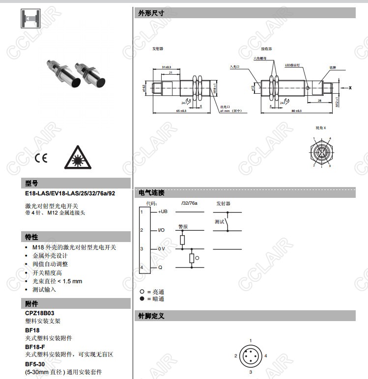 E18-LAS/EV18-LAS/25/32/76a/92,E18/EV18-LAS/32/59/76a/92,對射型傳感器