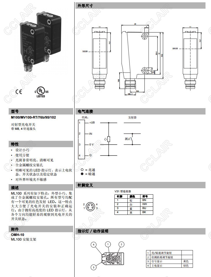 M100/MV100-RT/76b/95/102,對射型傳感器