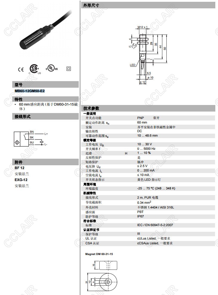 MB60-12GM50-E2,磁式接近開關(guān)