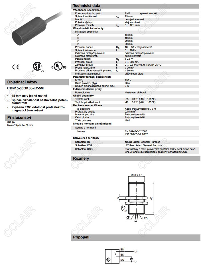 CBN15-30GK60-E2-5M,電容式接近開關(guān)