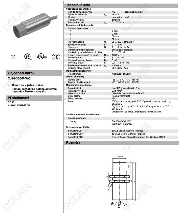 CJ10-30GM-WO,電容式接近開(kāi)關(guān)
