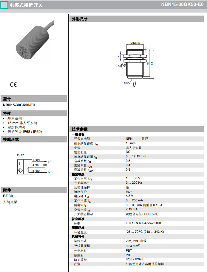 NBN15-30GK50-E0,NBN15-30GK50-E2感應式傳感器