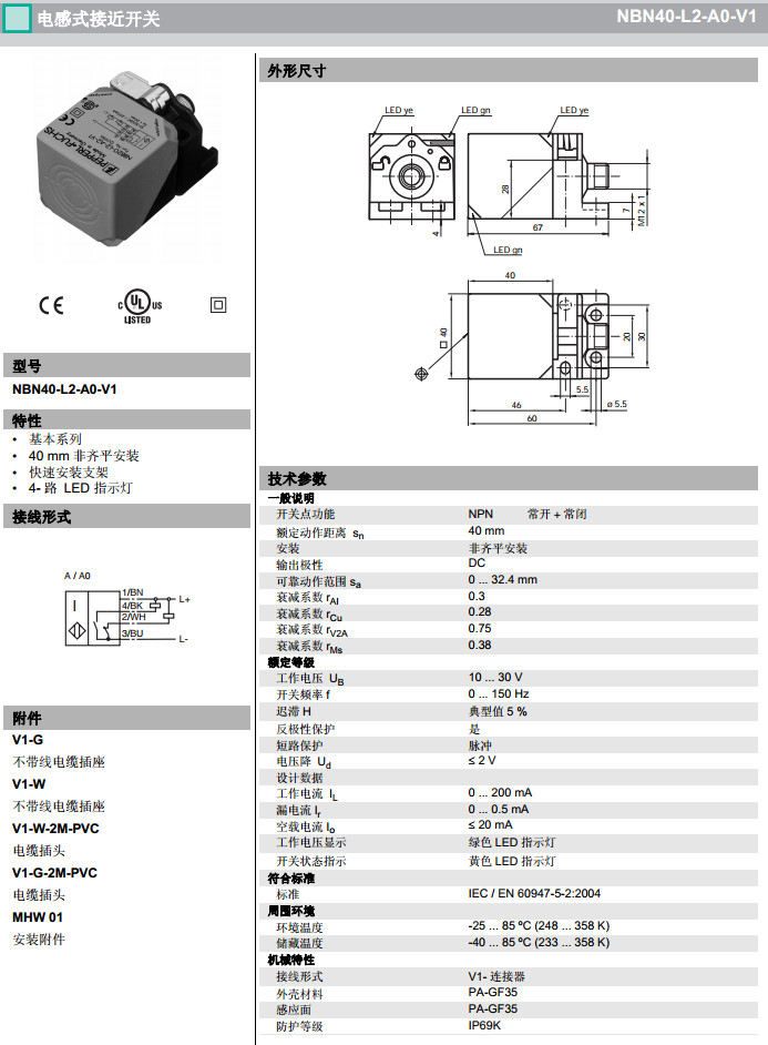 NBN40-L2-A0-V1,NBN40-L2-A0-V1-M,NBN40-L2-A2-V1-M,感應式傳感器