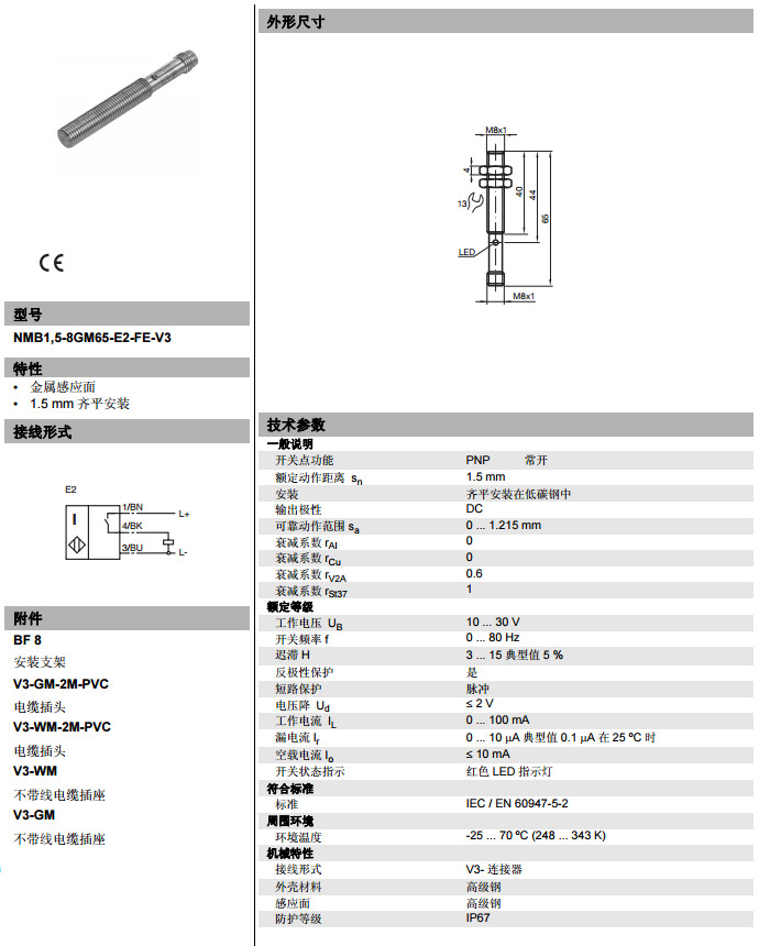 NMB1,5-8GM65-E2-FE-V3電感式接近開關(guān)