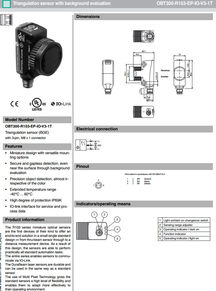 OBT300-R103-EP-IO-V3,OBT300-R103-EP-IO-V3-1T漫反射型傳感器