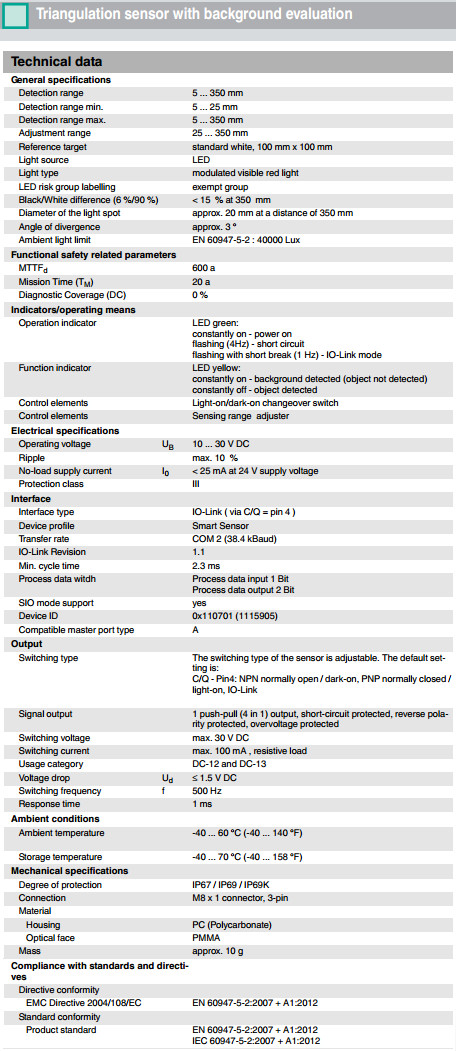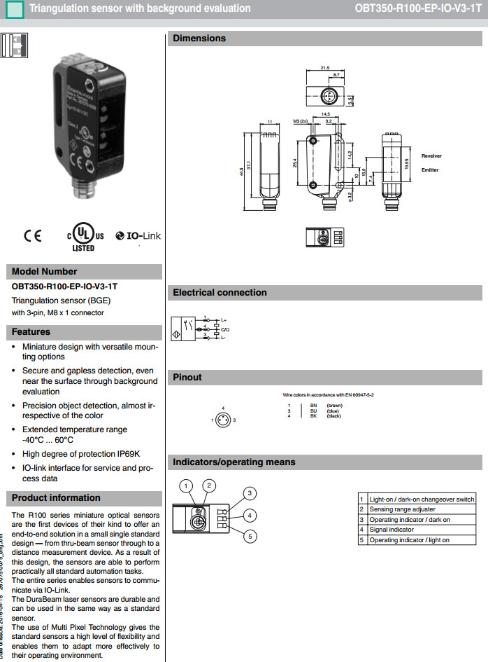 OBT350-R100-EP-IO-V3-1T漫反射型傳感器