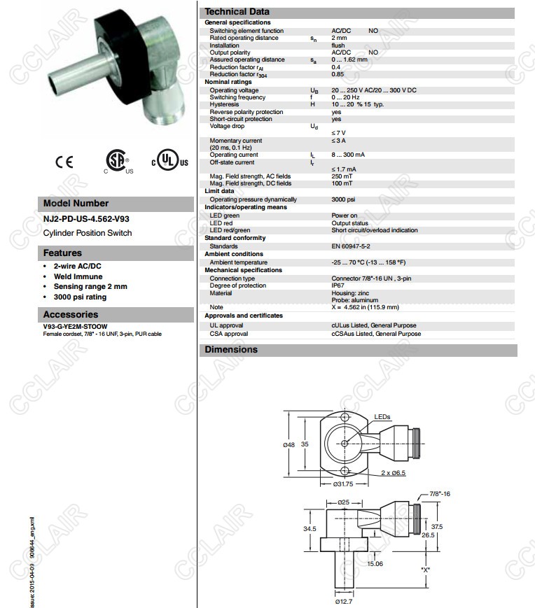 NJ2-PD-US-2.875-V93,NJ2-PD-US-4.562-V93,電感式接近開關(guān)