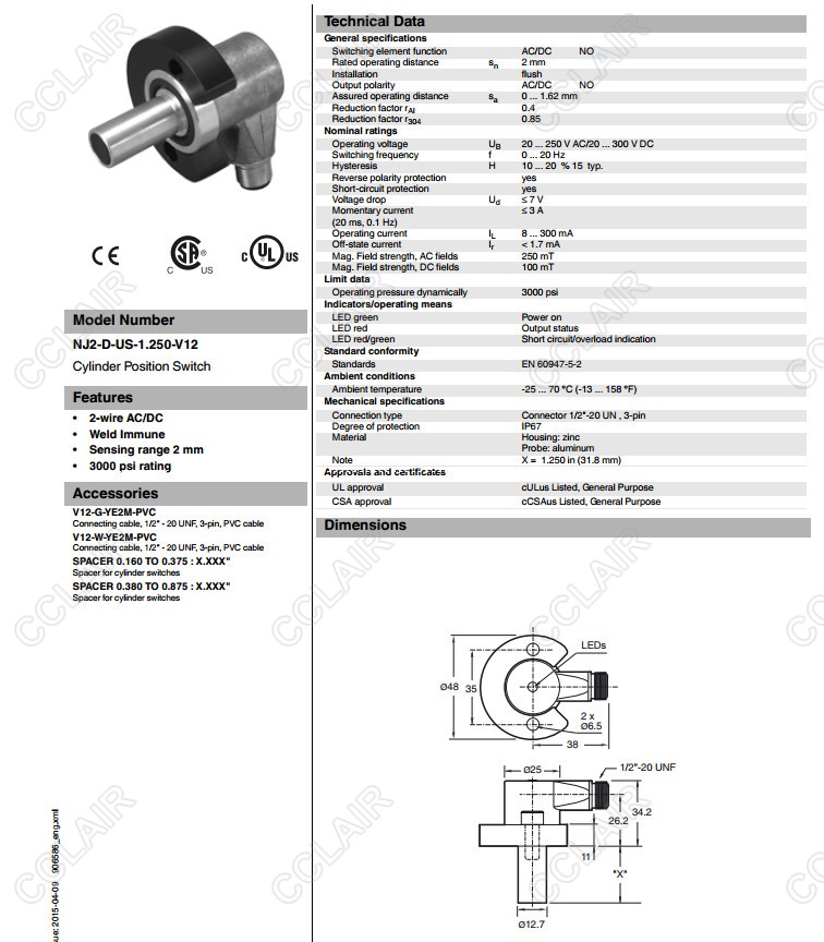NJ2-D-US-1.025-V12,NJ2-D-US-1.250-V12,NJ2-D-US-1.500-V12,電感式接近開關