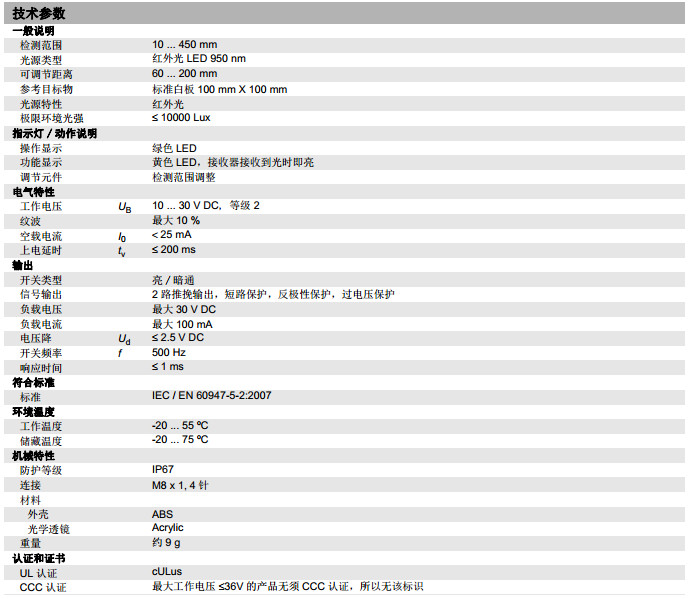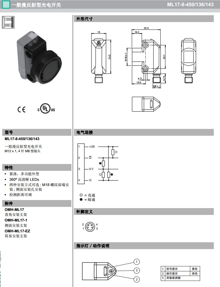 ML17-8-450/136/143漫反射型傳感器