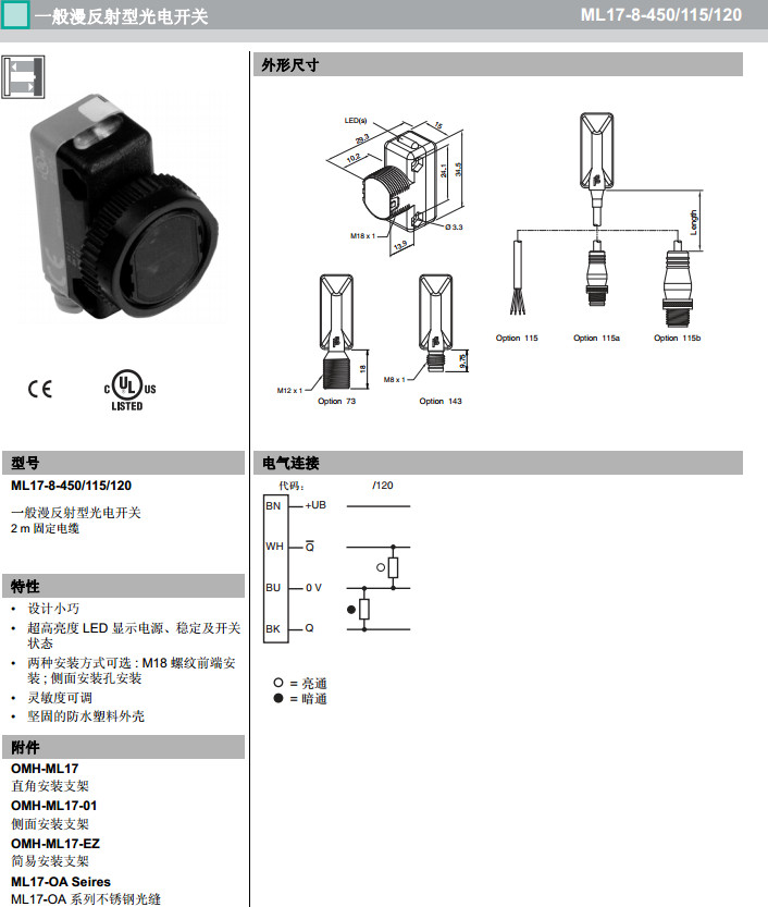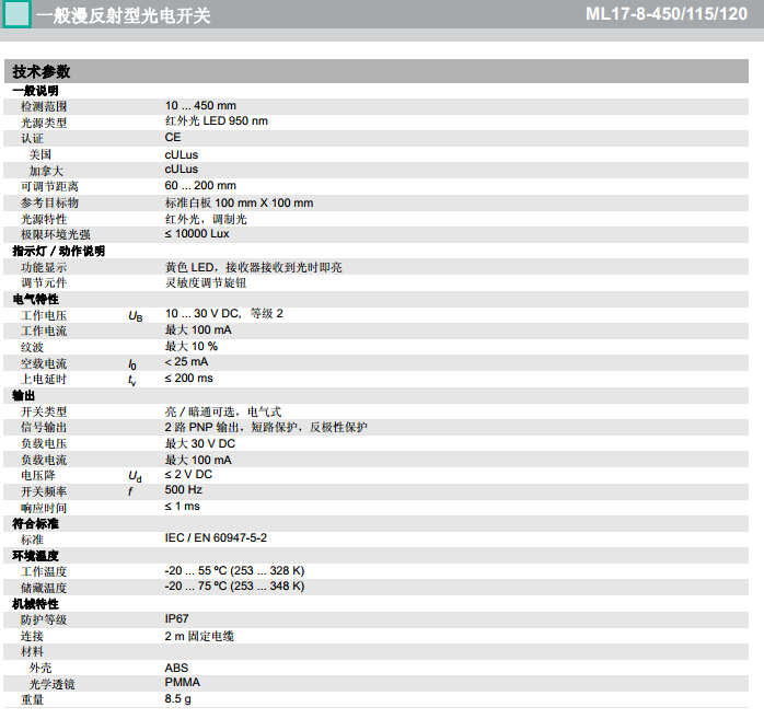 ML17-8-450/115/120,ML17-8-450/115/127漫反射型傳感器