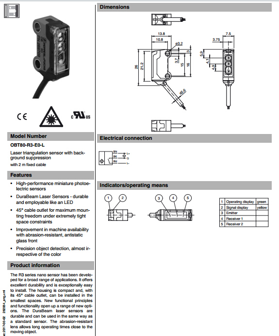 OBT80-R3-E0-L,漫反射型傳感器