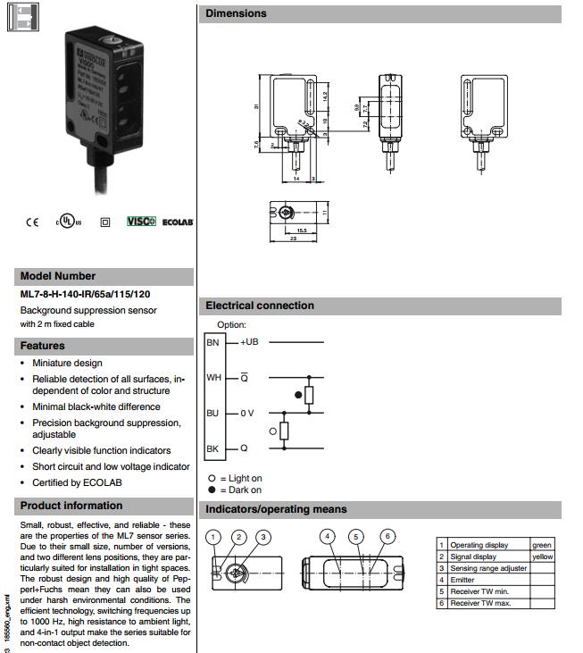 ML7-8-H-140-IR/65a/115/120,漫反射型傳感器