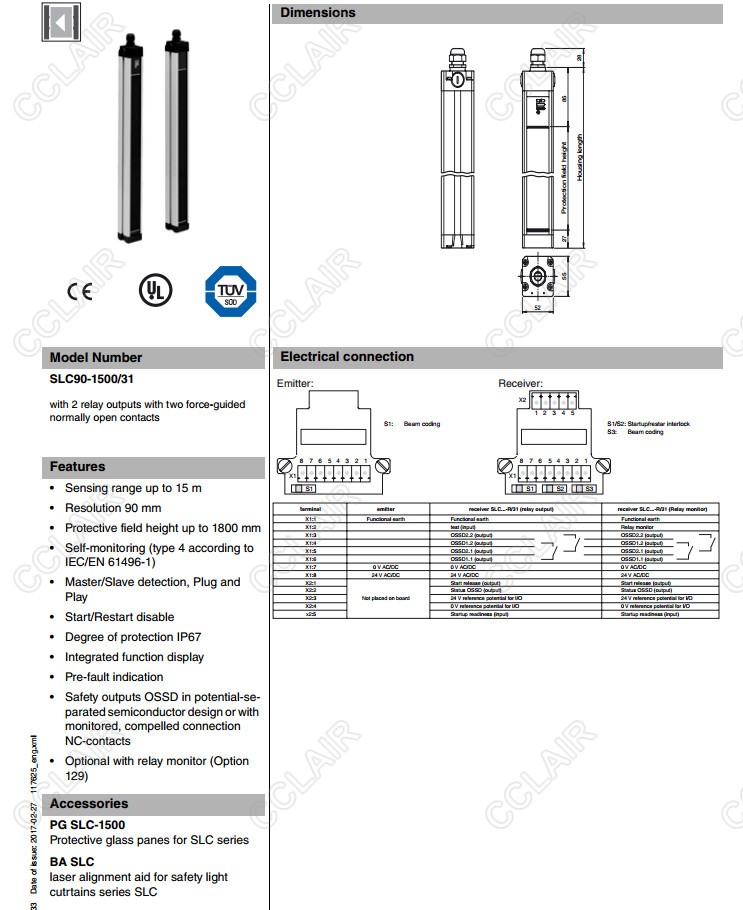 SLC90-1200-S,SLC90-1200/31,SLC90-1500,SLC90-1500-S,SLC90-1500/31,安全光柵