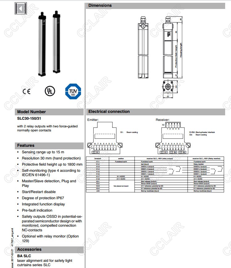 SLC30-150/31,SLC30-1500,SLC30-1500-S,SLC30-1500/31,SLC30-1650,SLC30-1650-S,安全光柵