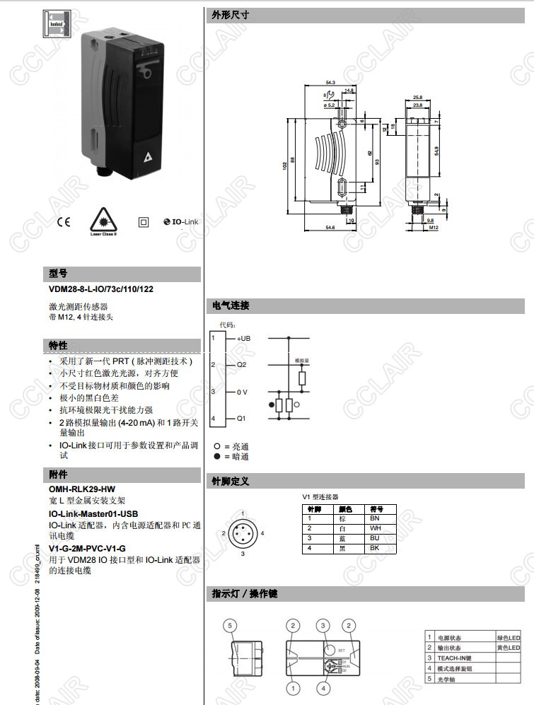 VDM28-8-L-IO/73c/110/122,DM28-8-L-IO/73c/13,VDM28-8-L/73c/136,距離傳感器