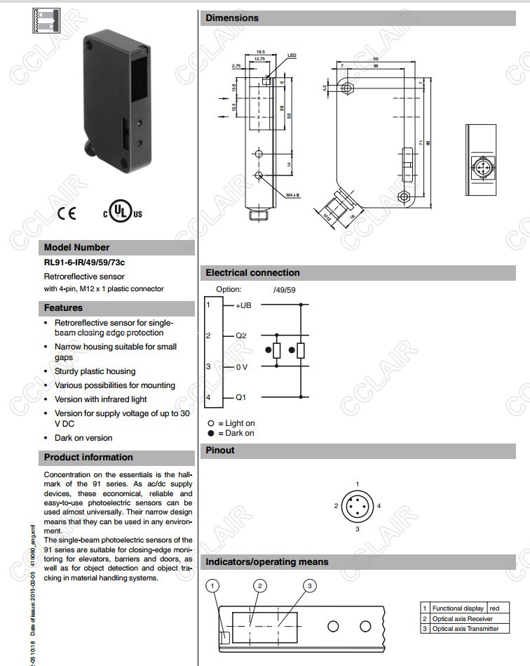 RL91-6-IR/49/59/73c,反射板型傳感器