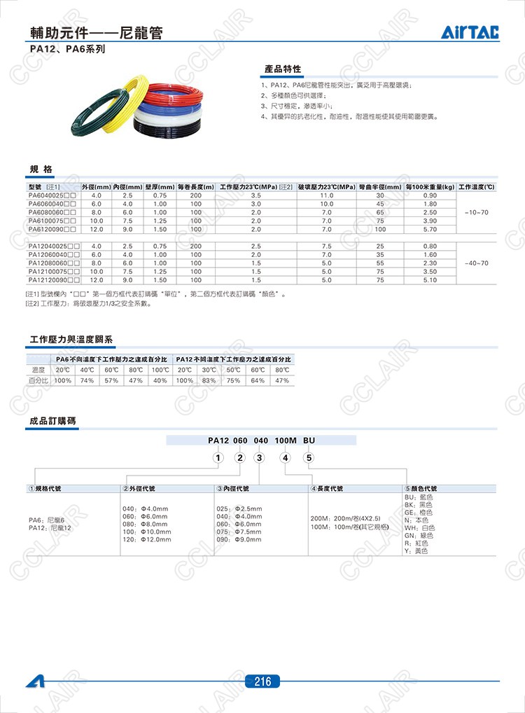 PA6040025100MBU,PA6040025100MBK,PA6040025100MGE,PA6040025100MN,AIRTAC尼龍管