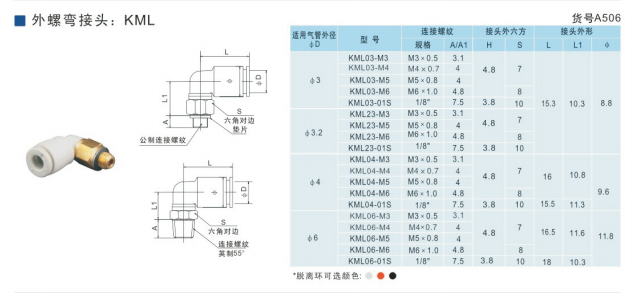 SMC型外螺彎接頭KML03-M3,KML23-M3,KML03-M5,KML23-M5,KML03-M6,KML23-M6,KML03-01S,KML23-01S,KML04-M3,KML04-M5,KML04-M6,KML04-01S,KML06-M5,KML06-M6,KML06-01S,