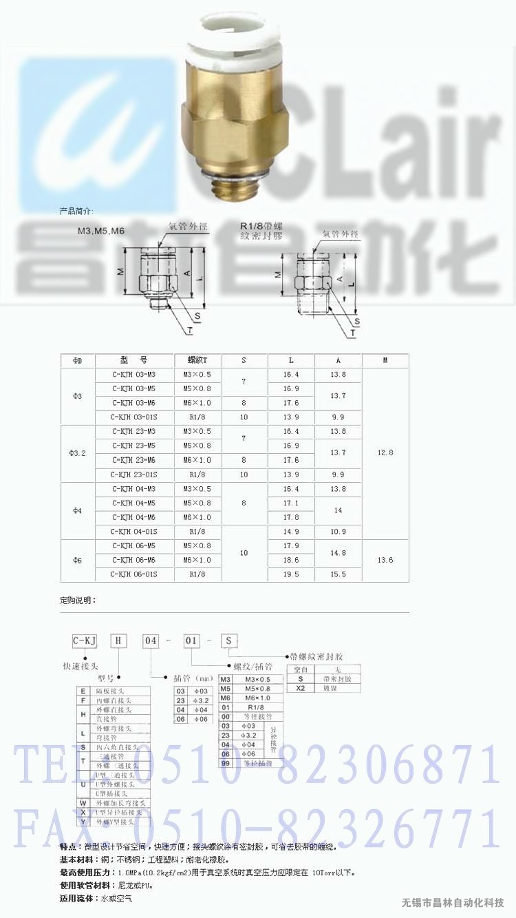 C-KJH03-M3,C-KJH03-M5,C-KJH03-M6,C-KJH03-01S,直通接頭,生產廠家,價格