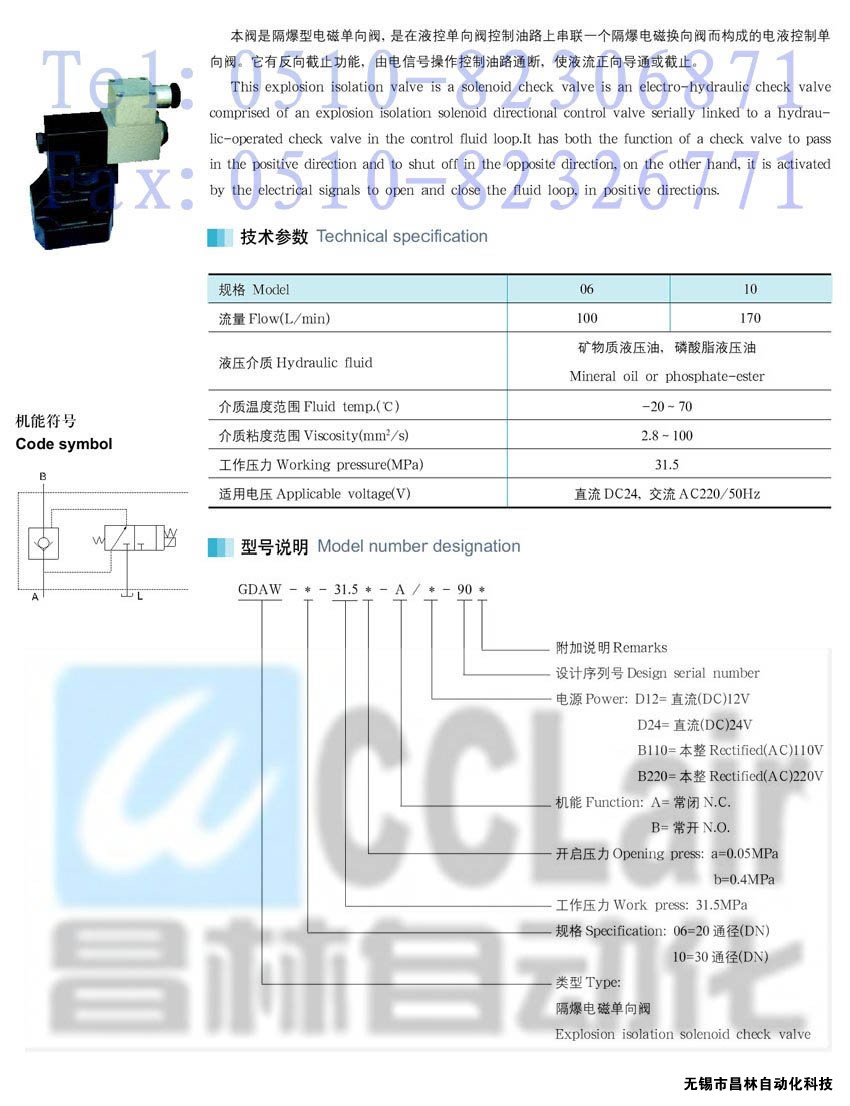 GDAW-10-31.5a-B/D12-90,GDAW-10-31.5a-A/D12-90,GDAW-06-31.5a-A/D12-90,隔爆電磁單向閥