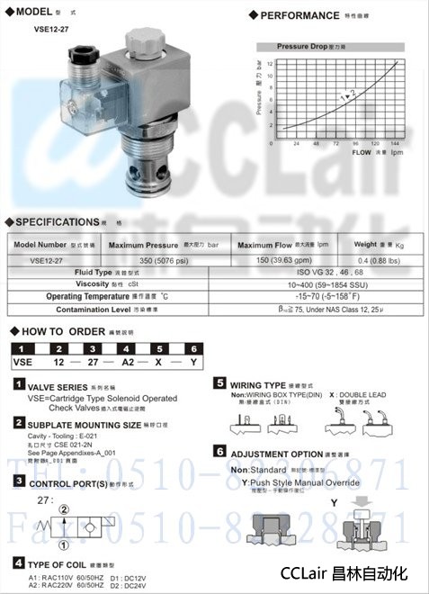 VSV12-27, 插入式電磁閥,