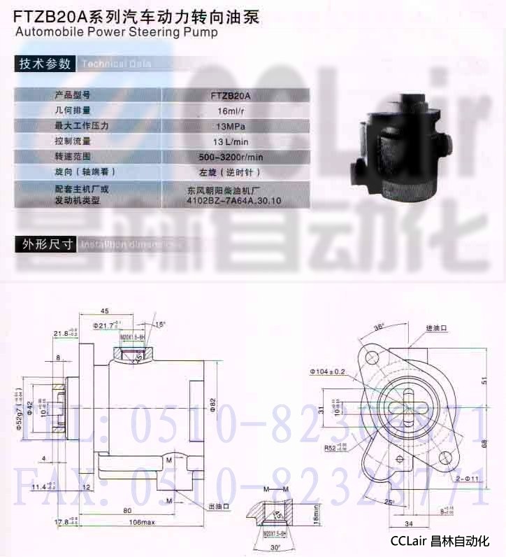 FTZB20A,汽車動(dòng)力轉(zhuǎn)向油泵