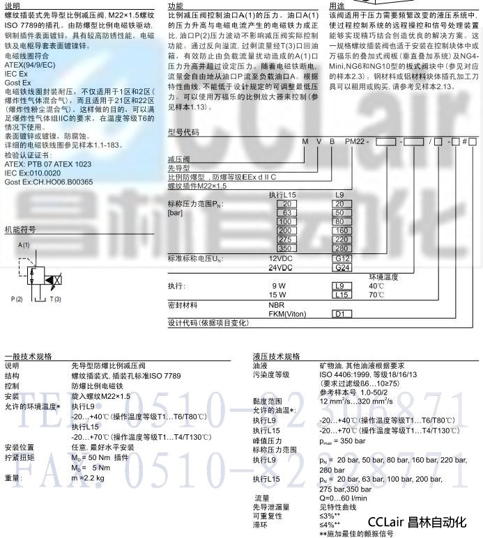 MVBPM22,防爆型先導(dǎo)式比例減壓插裝閥