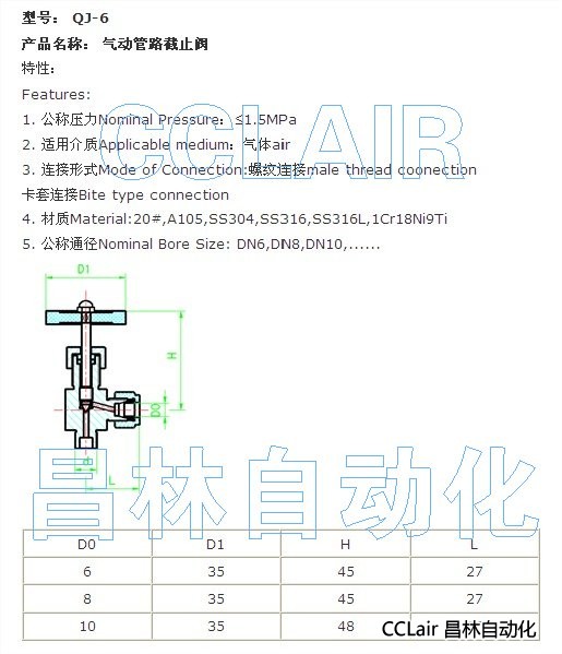 QJ-6,氣動管路截止閥