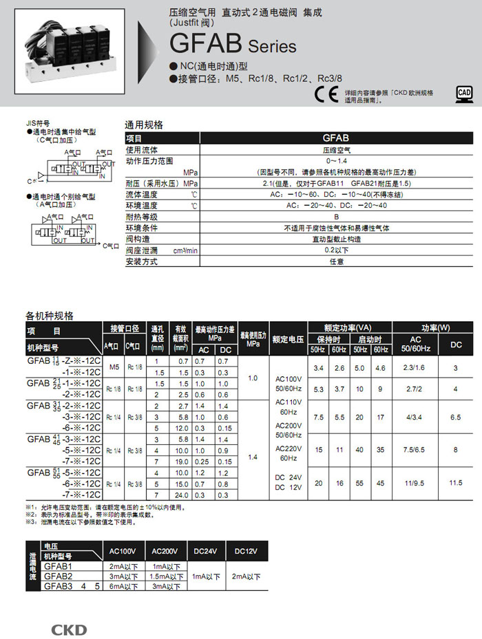 GFAB11,GFAB15,GFAB21,GFAB25,GFAB31,GFAB35,GFAB41,GFAB45,GFAB51,GFAB55,CKD直動式2通電磁閥