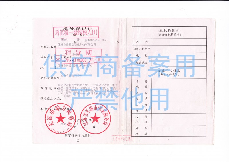 無錫市昌林自動化科技有限公司稅務(wù)登記證(副本)