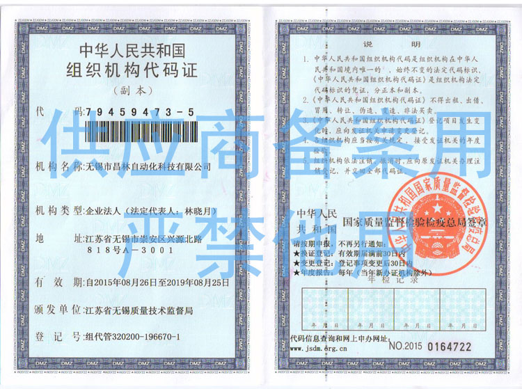 無(wú)錫市昌林自動(dòng)化科技有限公司組織機(jī)構(gòu)代碼證