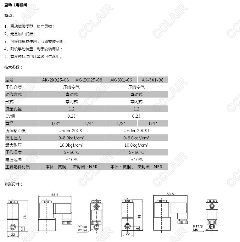 AK-2X025-06,AK-2X025-08,AK-3X1-06,AK-3X1-08,直動(dòng)式電磁閥