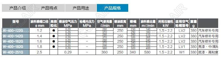 W-400-122G,W-400-142G,W-400-162G,W-400-182G,W-400-251G,W-400中心杯噴槍