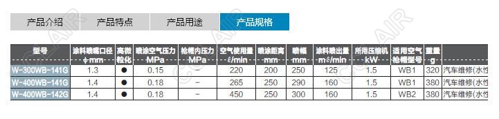 詳細(xì)信息 W-300WB-141G,W-400WB-141G,W-400WB-142G,水性涂料專用噴槍