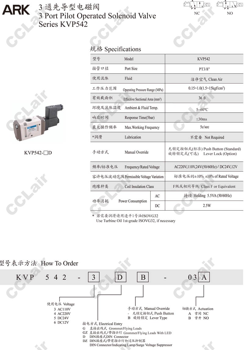 詳細(xì)信息 KVP542-3,KVP542-4,KVP542-5,KVP542-6,KVP542-3DZ-03B,KVP542-3G-03A,ARK3通先導(dǎo)型電磁閥