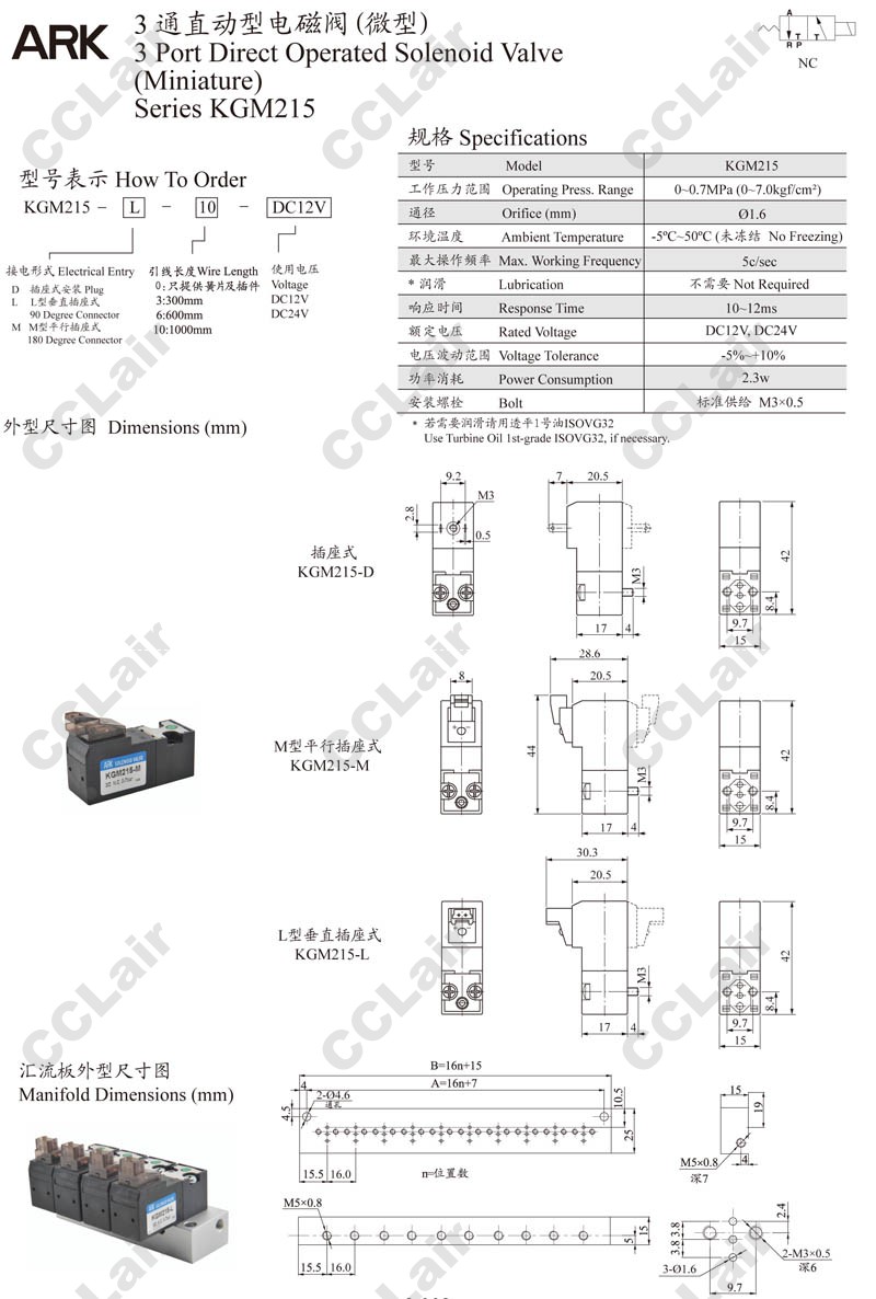 KGM215,KGM215-L-3,KGM215-L-6,KGM215-D-6,KGM215-D-10,KGM215-M-3,KGM215-M-6,ARK3通直動型電磁閥