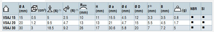 詳細信息 VSAJ15,VSAJ20,VSAJ30,COVAL通用吸盤 VSAJ系列通用吸盤,波紋形1.5褶,Ø15 - 30mm,材料:丁腈橡膠(NBR),硅膠(SI)。 主要參數(shù)見下表: