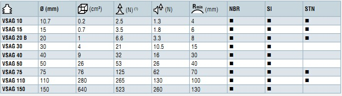 詳細(xì)信息 VSAG10,VSAG15,VSAG20B,VSAG30,VSAG40,VSAG50,VSAG75,VSAG110,VSAG150,COVAL通用吸盤 VSAG系列通用吸盤,波紋形1.5褶,Ø10 - 150mm,材料:丁腈橡膠(NBR),硅膠(SI),Siton®(STN)。 主要參數(shù)見下表:
