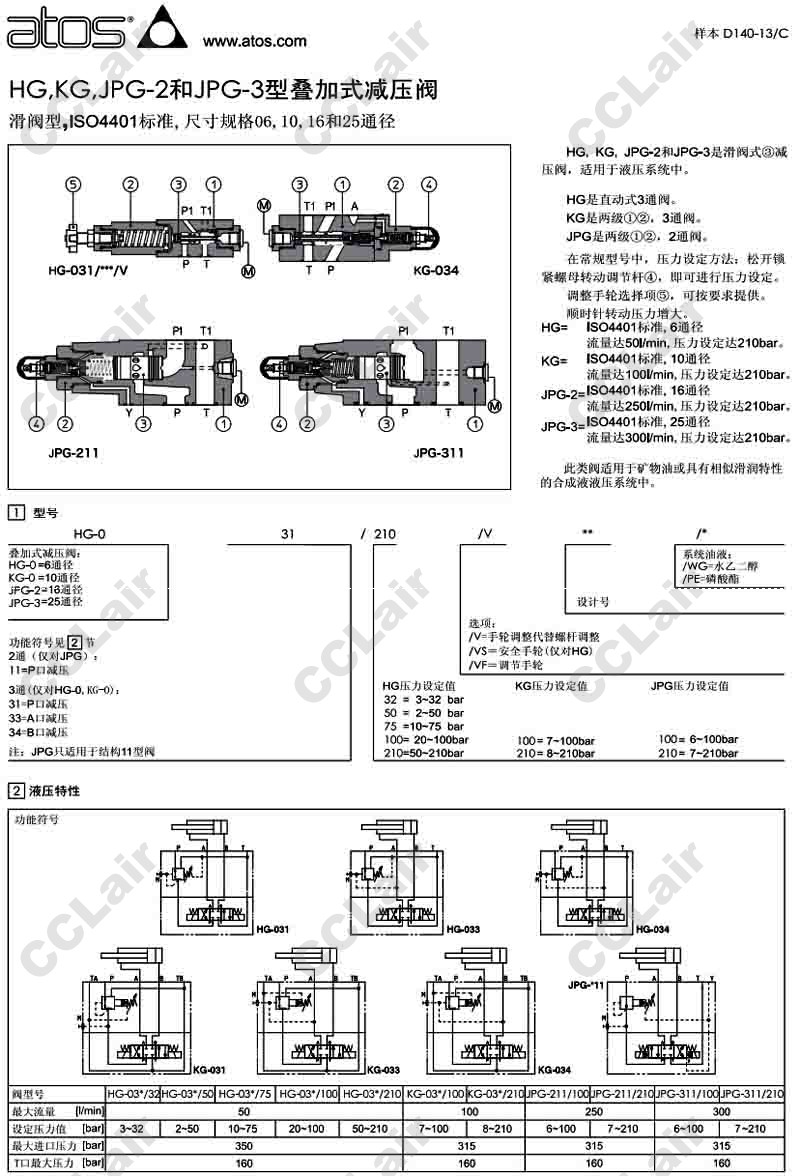 JPG-211/100/V,JPG-211/210/V,阿托斯ATOS JPG-311/100/VF,JPG-311/210/VF,