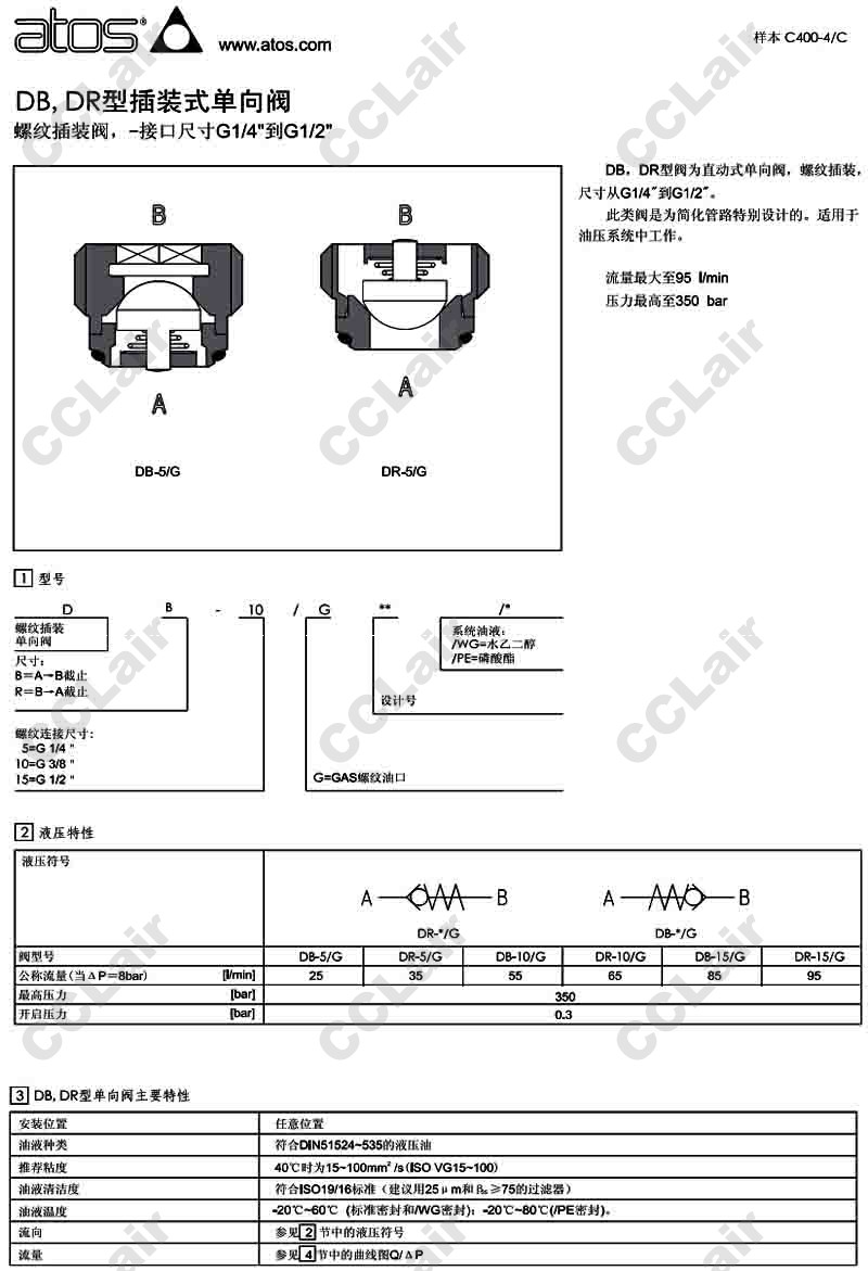 DB-5/G,DB-10/G,DB-15/G, DR-5/G,DR-10/G,DR-15/G,阿托斯ATOS插裝式單向閥