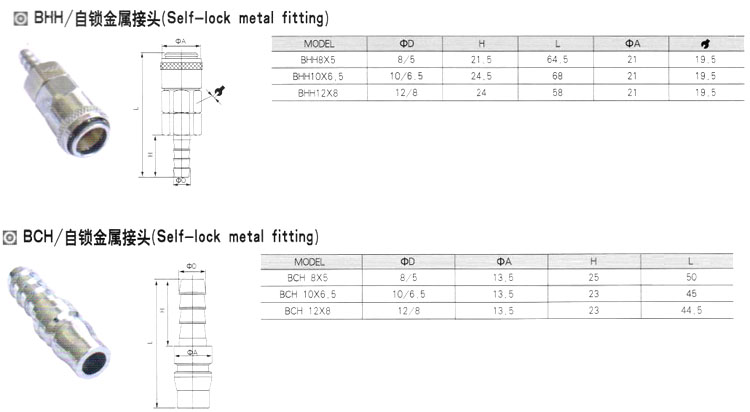 BCH8×5,BCH10×6.5,BCH12×8,BHH8×5,BHH10×6.5,BHH12×8,自鎖金屬接頭