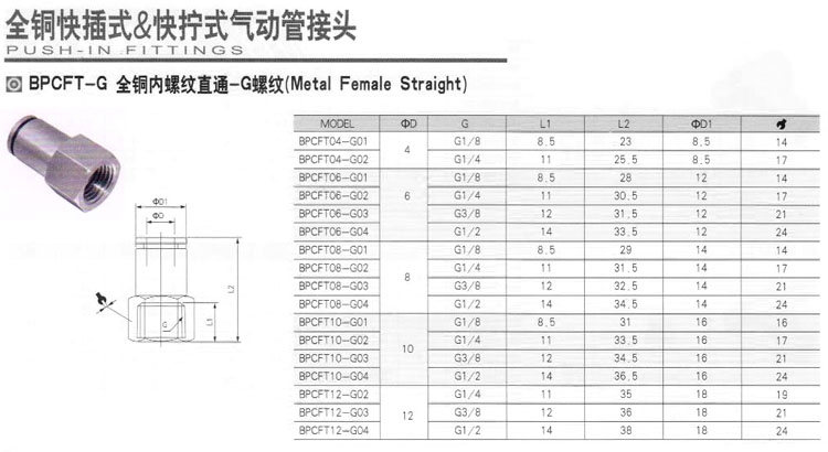 詳細信息 BPCFT04-G01,BPCFT06-G01,BPCFT08-G01,BPCFT10-G01,BPCFT12-G02,BPCFT04-G02,氣動管接頭