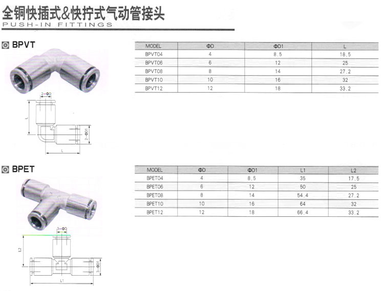 型號(hào): BPVT04,BPVT06,BPVT08,BPVT10,BPVT12,BPET04,BPET06,BPET08,BPET10,BPET12