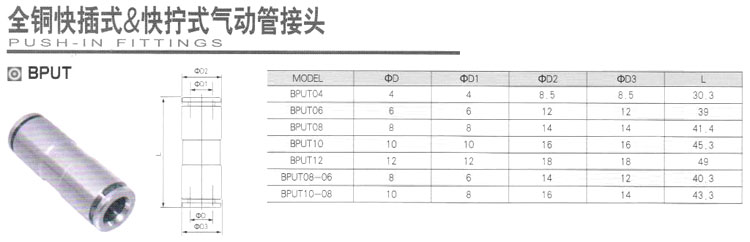 您當(dāng)前的位置:首頁 » 產(chǎn)品&解決方案 » BPUT04,BPUT06,BPUT08,BPUT10,BPUT12,BPUT08-06,BPUT10-08,氣動(dòng)管接頭
