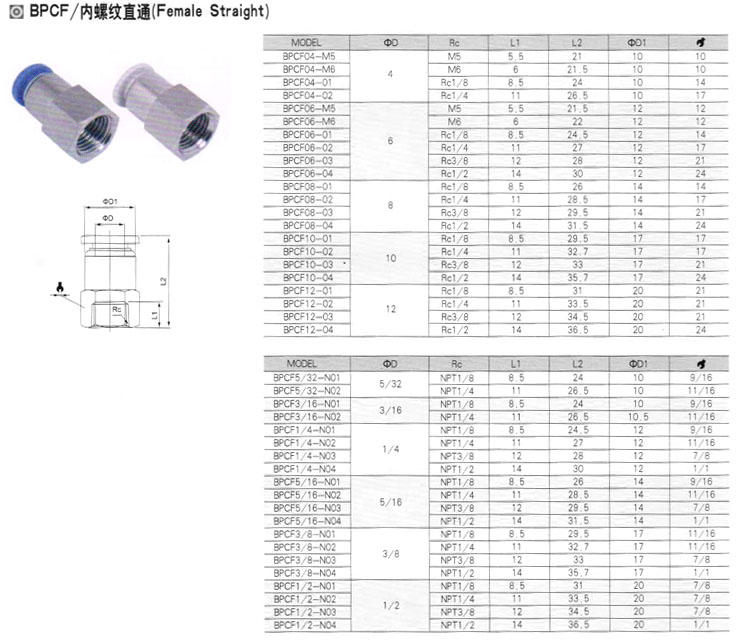 BPCF04,BPCF06,BPCF08,BPCF10,BPCF12,BPCF5/32,BPCF3/16,BPCF1/2,BPCF1/4,BPCF1/2-N04,快插式氣動(dòng)管接頭