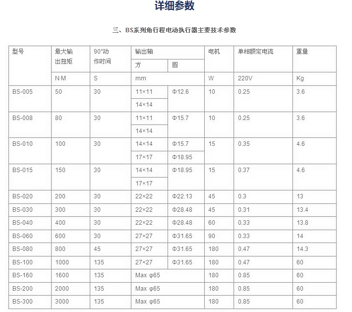 詳細(xì)信息 BS-005,BS-008,BS-010,BS-015,BS-020,BS-030,BS-040,電動(dòng)執(zhí)行器