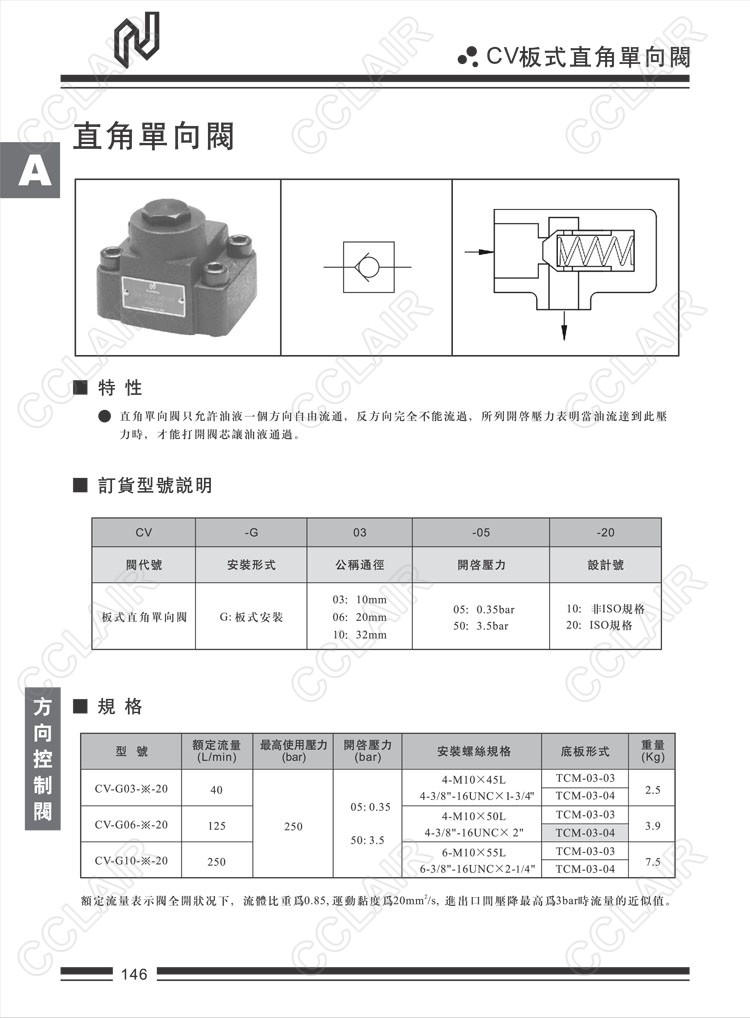 Northman臺灣北部精機,板式直角單向閥CV-G03-05-10,CV-G03-50-10,CV-G06-05-10,CV-G06-50-10,CV-G10-05-10,CV-G10-50-10,CV-G03-05-20,CV-G03-50-20,CV-G06-05-20,CV-G06-50-20,CV-G10-05-20,CV-G10-50-20
