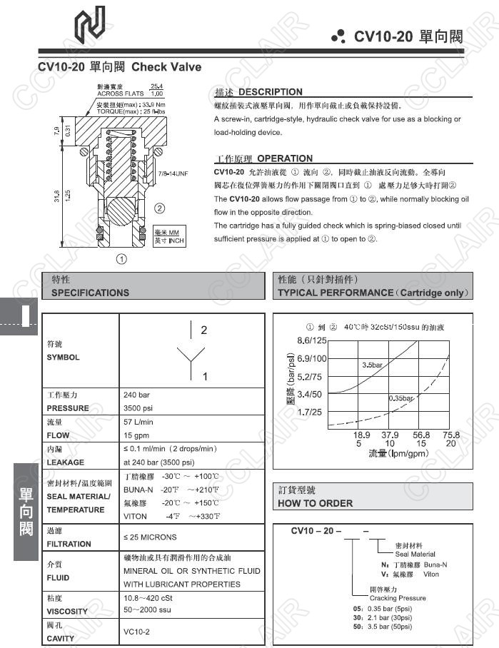 Northman臺灣北部精機,單向閥CV10-20-05-N,CV10-20-05-V,CV10-20-30-N,CV10-20-30-V,CV10-20-50-N,CV10-20-50-V