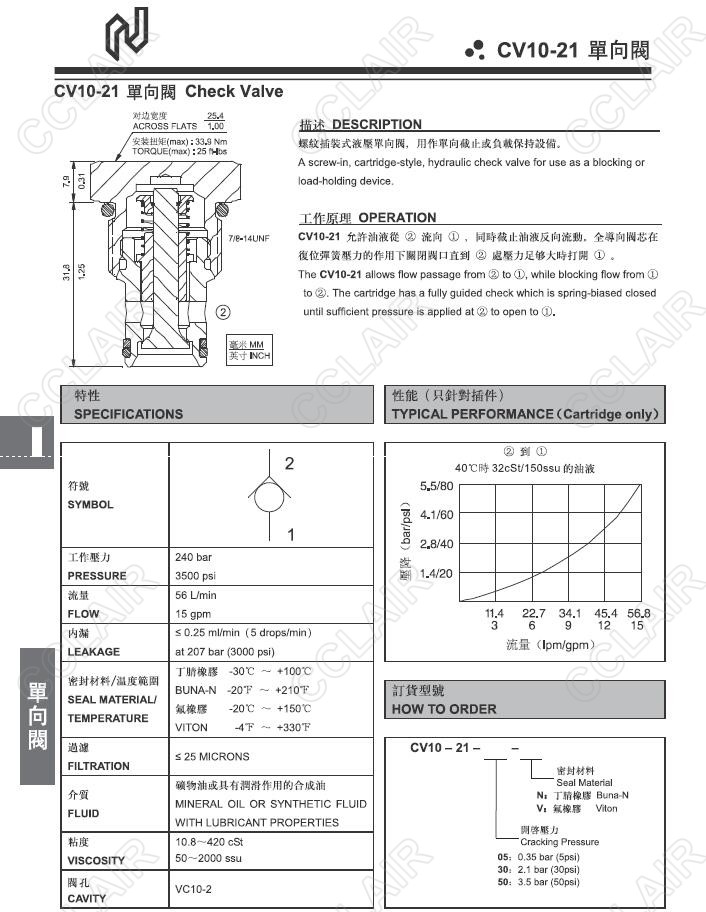 Northman臺灣北部精機,單向閥CV10-21-05-N,CV10-21-05-V,CV10-21-30-N,CV10-21-30-V,CV10-21-50-N,CV10-21-50-V