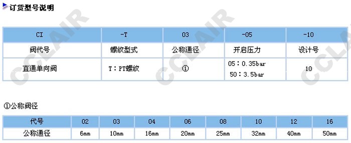 CI-T03-05-10,CI-T04-05-10,CI-T06-05-10,CI-T06-05-10,直通單向閥